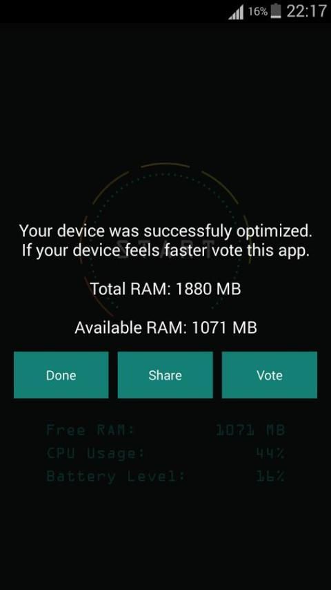 Kecepatan mudah perangkat Anda, membebaskan memori RAM. Dengan 1 tekan tombol MULAI perangkat akan mendapatkan dorongan signifikan dan optimasi