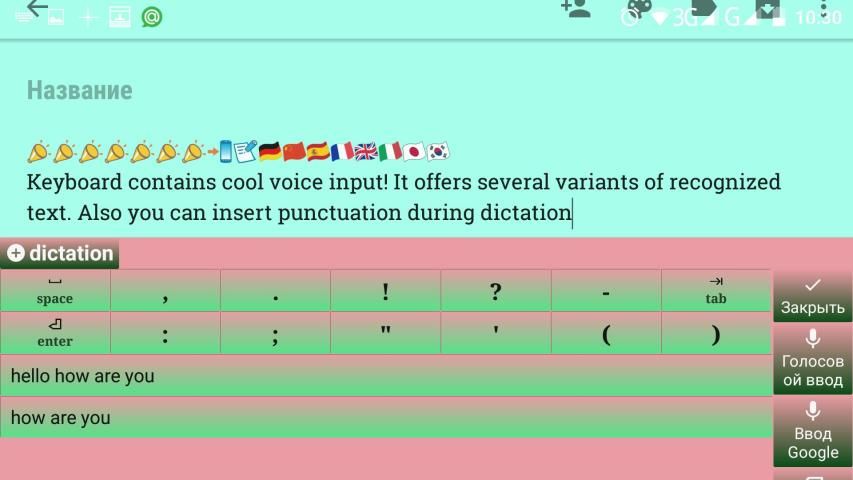 input teks suara menawarkan beberapa hasil dan mendukung input manual dari tanda baca - sehingga Anda dapat mendikte teks besar tanpa kesalahan.