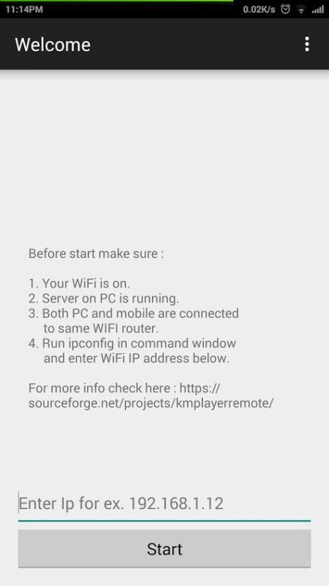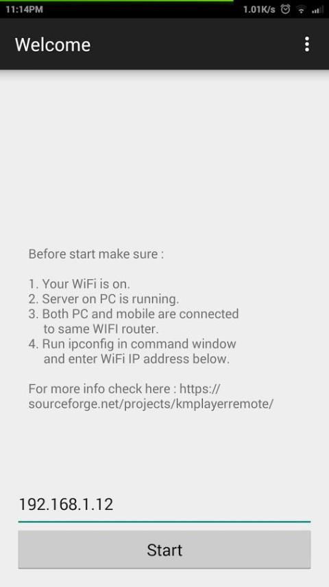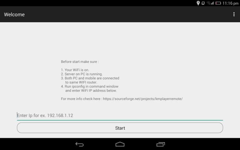 Sebuah aplikasi remote control minimalis dibuat khusus dikembangkan untuk KM Player. Untuk bekerja dengan Anda perlu men-download server untuk jendela dari sini: https://sourceforge.net/projects/kmplayerremote/