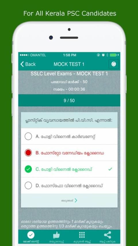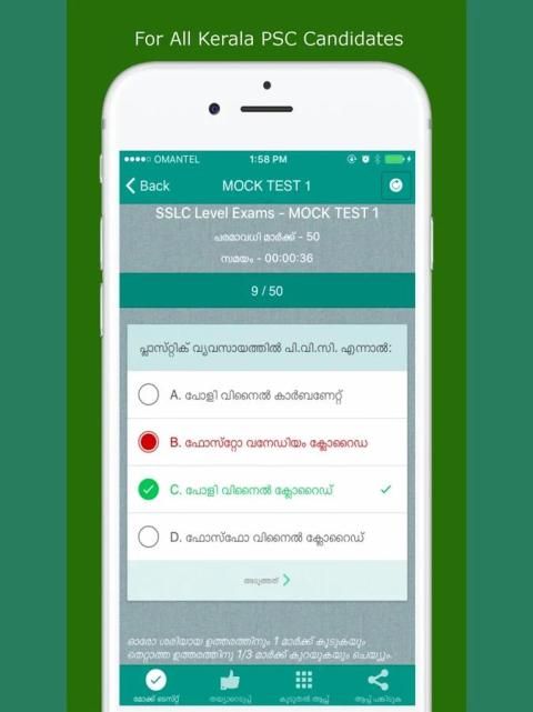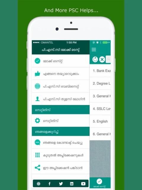 Kerala PSC Uji aplikasi adalah untuk semua yang sedang mempersiapkan Kerala PSC Ujian. Aplikasi kpsc untuk Ujian Kerala PSC memungkinkan untuk menghadiri tes mengejek psc dan menganalisis hasil psc. Kerala PSC tes mengejek termasuk pertanyaan psc bertanya dalam ujian psc sebelumnya. PSC App seperti Thulasi psc ketika Anda ingin untuk login psc untuk mendapatkan informasi tentang psc secara online dan aplikasi Kerala PSC ini adalah untuk para kandidat psc. Mencoba untuk Thulasi psc dengan psc login di dapat mengumpulkan informasi lebih lanjut tentang ujian kpsc. Kerala PSC aplikasi termasuk koleksi besar pertanyaan psc untuk yang mempersiapkan ujian psc setelah pendaftaran psc. Kerala PSC Mock Uji aplikasi memberikan hasil psc rinci setelah menghadiri tes psc kerala. Aplikasi ini sangat membantu sebagai panduan psc kerala untuk mendapatkan pekerjaan pemerintah kerala seperti LD Clerk (LDC), Sekretariat Asisten, BDO, Sekretaris Panchayat, Deputi Kolektor, Sub Insepector, Cukai Insepector dll