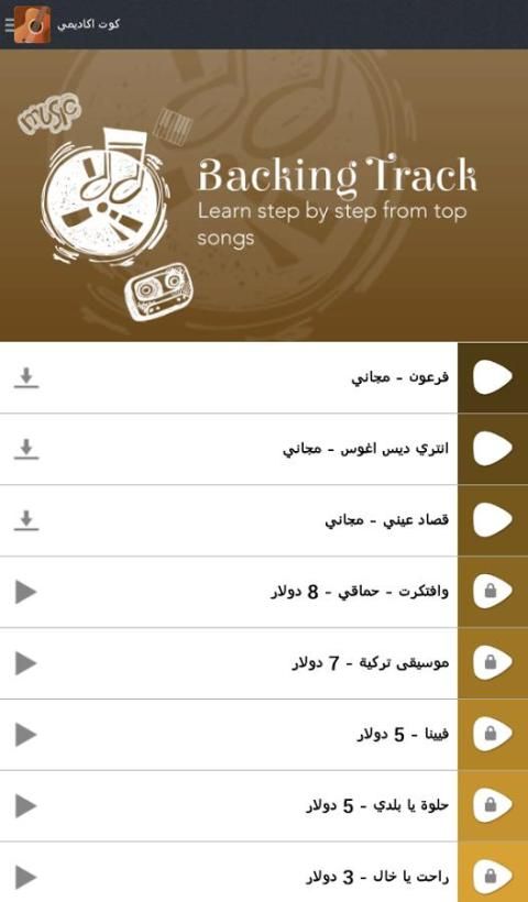 You can use the application in either English or Arabic, and it supports offline playing for audio songs and backing tracks so that you can practice guitar playing anytime and anywhere.