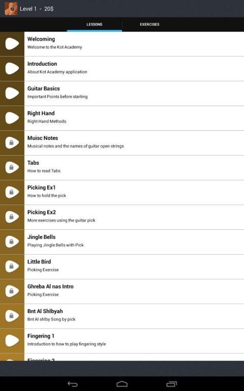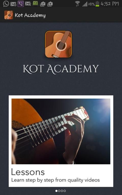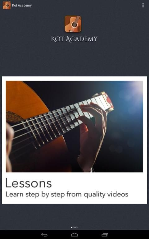 Kot Academy is an online app for teaching the guitar instrument through recorded videos, along with several tutorial songs,Music and backing tracks to play along.