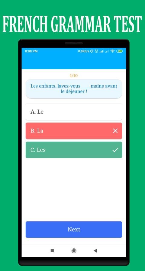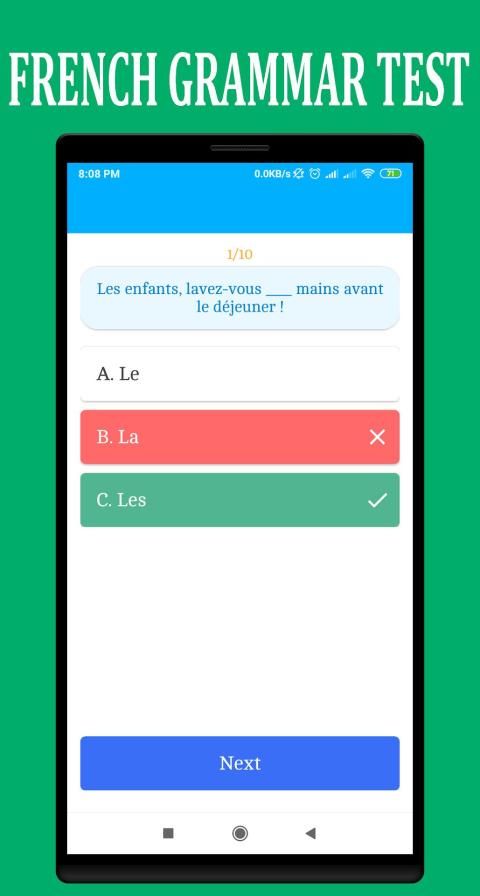 "French Grammar Test" IS COMPLETELY OPTIMIZED for your android phone