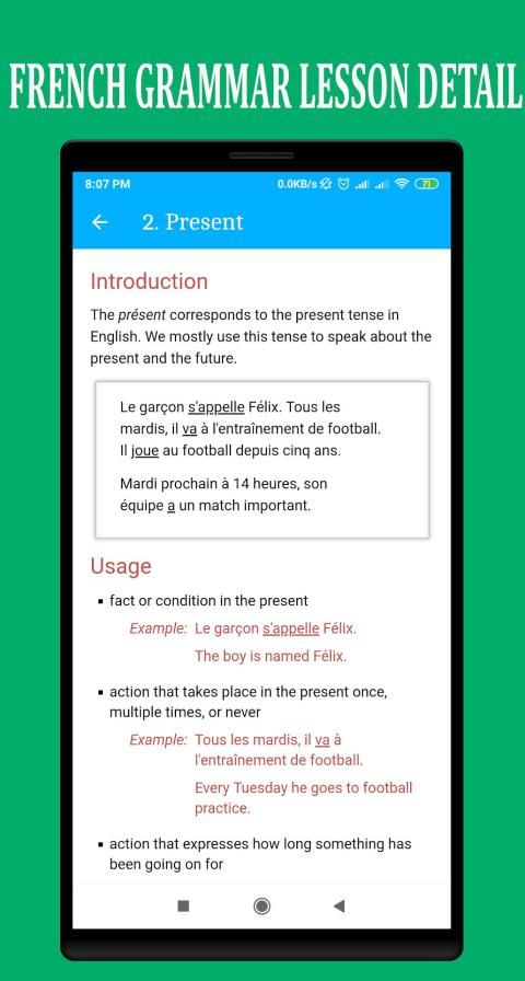 "French Grammar In Use" IS COMPLETELY OPTIMIZED for your android phone