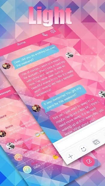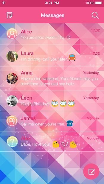 Decorate your Messages with tons of colorful and stylish Messages Themes(keep increasing). An awesome way to turn a plain Messaging app into a beautiful and unique one. Personalize Messages in your own way.