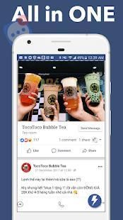 Free, lightweight alternative for Facebook Lite, Facebook messenger lite which allows you to chat with your Facebook friends, send emoticon, videos, images, gift, browse news feed, comments, etc...