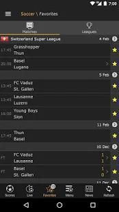 Tap the star next to any match for live notifications or favourite league or sport so you can quickly get to the scores and details of matches you care about.