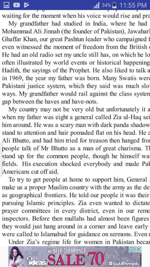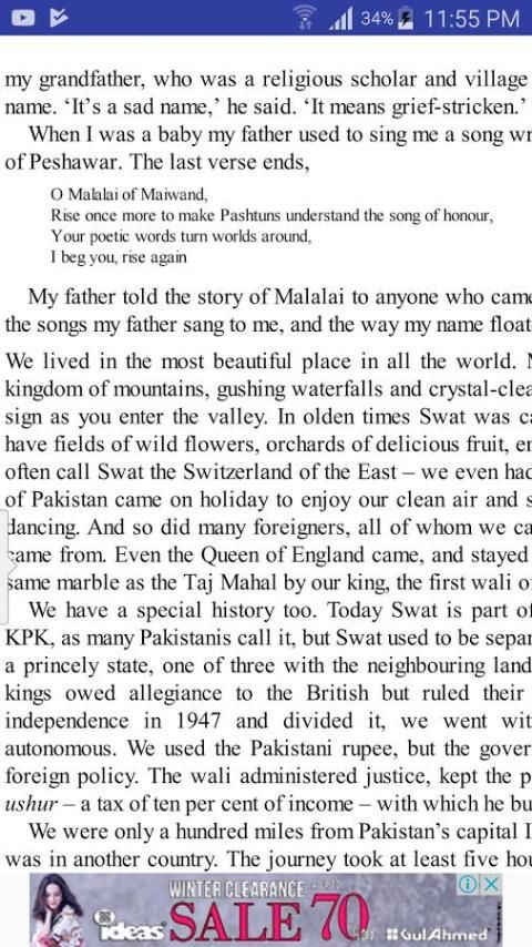 Malala Yousafzai lahir 12 Juli 1997) adalah seorang aktivis Pakistan untuk pendidikan perempuan dan yang termuda dikenal Hadiah Nobel laureate.She untuk advokasi hak asasi manusia, khususnya pendidikan perempuan dan anak dalam dirinya Lembah Swat asli di Khyber Pakhtunkhwa.