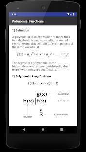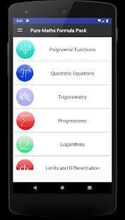This app provides a comprehensive coverage about definitions and formulas found in Pure Mathematics with graphical representations.