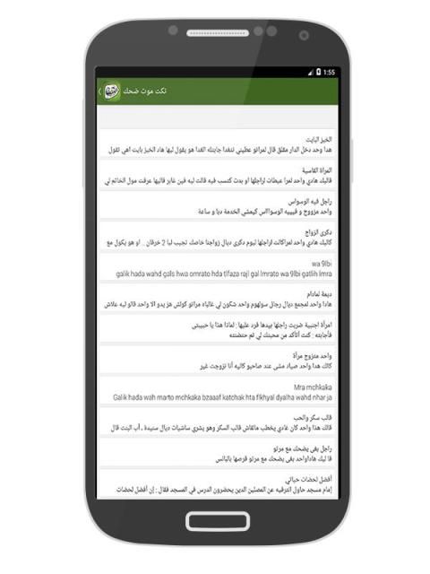 تطبيق نكت موت ضحك بالدارجة المغربية هو تطبيق مغربي 100% يحتوي على ازيد من 500 نكتة مغربية خاسرة مضحكة و بالدارجة واللهجة المغربية .