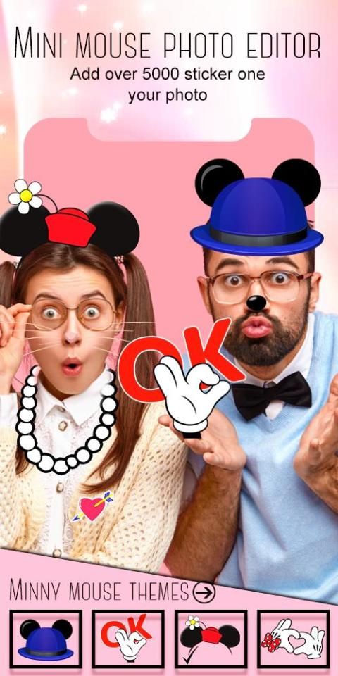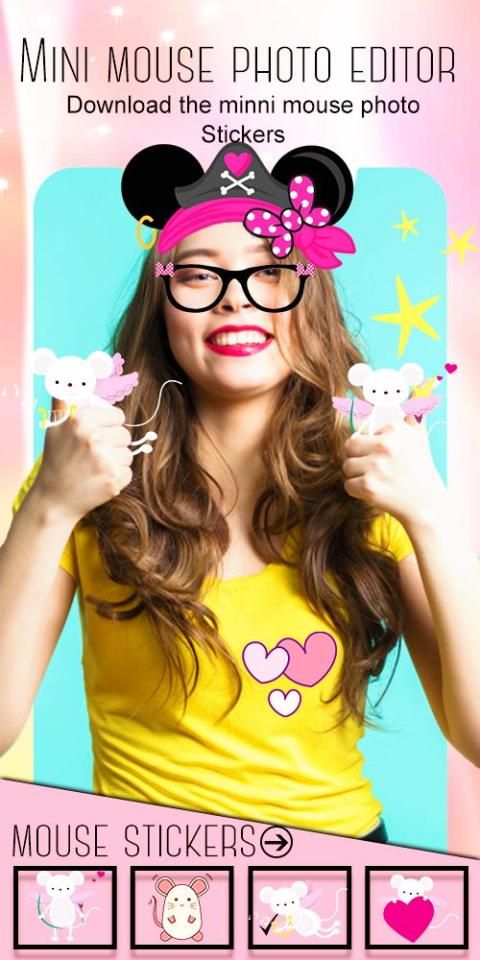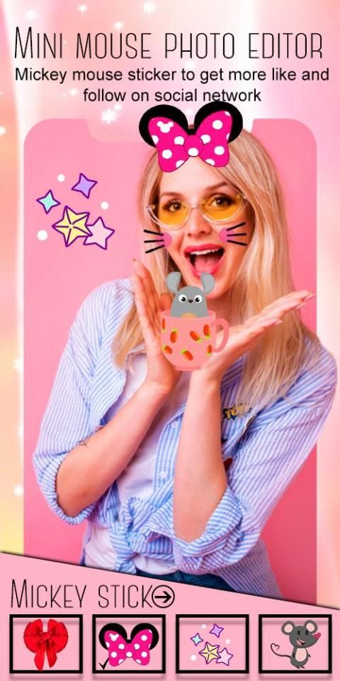 Give yourself or your best friend the cutest mini mouse makeover by choosing a fun heart crown filter with mouse ears or unicorn stickers for pics. Enter the most popular photo booth and other minny mouse apps won't be as fun and interesting as Mini Mouse crown. This cute sticker camera and photo editor kawaii has dozens of cute stickers and live effects that will impress everyone and put different stickers on pictures to decorate them and make them an art piece! This app is an adorable virtual studio filled with miki mouse photo stickers and kawaii unicorns. put lots of funny stickers for photos and dynamic stickers or even care bears stickers. Explore pink heart headband stickers, sweet miny bowknot stickers for pictures with adorable photo stickers and clipart, and all your dreams will come true. Do a free of charges fun makeover and unicorn yourself.