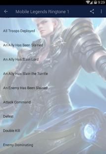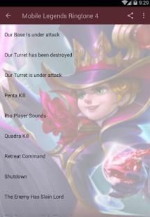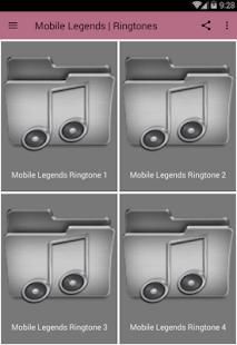 Dalam aplikasi ini ada banyak nada dering dari legenda mobile, dari ringtone membunuh dan ringtone permainan di awal juga ada dan lain-lain.