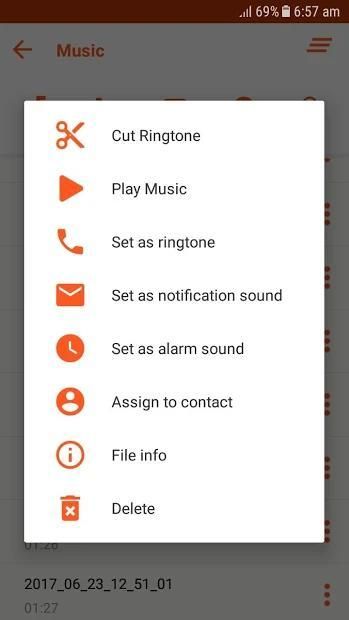 12. Mp3 Cutter contains a quick menu for each ringtone including