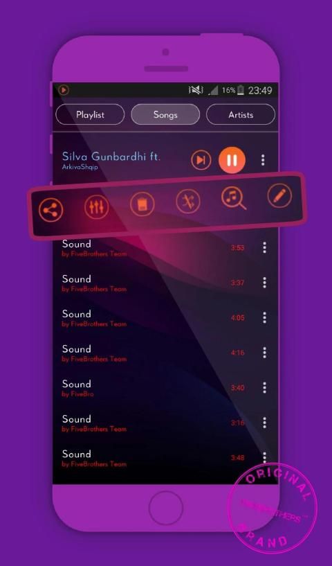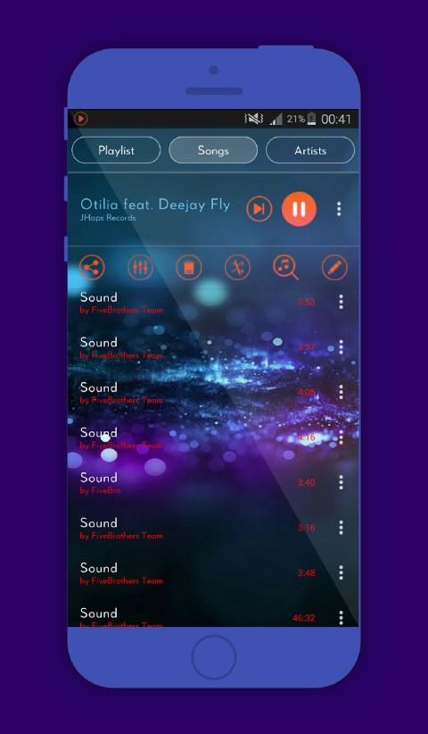 Powerful equalizer, Speed dialing, Deck of all music and audio files, Easy to use and Custom themes.