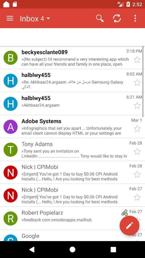 - Bersatu inbox untuk membaca semua email di layar yang sama