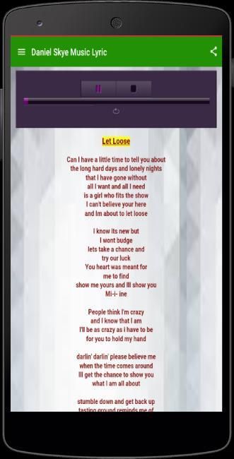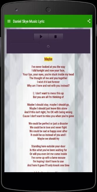 aplikasi ini adalah tentang musik lirik Daniel Skye untuk Anda penggemar ini.