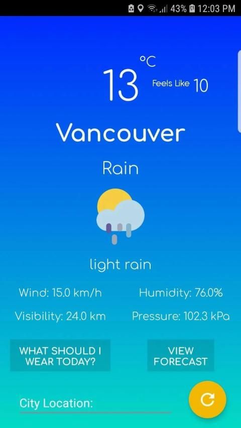 ○ Local Weather: Identifies your current location and automatically fetches the weather data for you as soon as you open the app on your phone