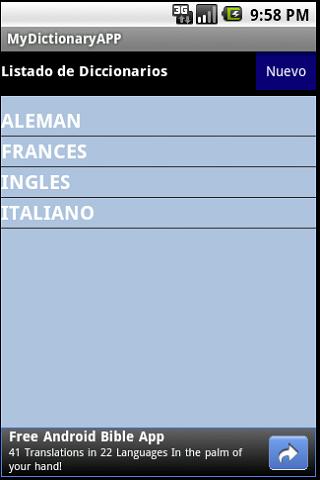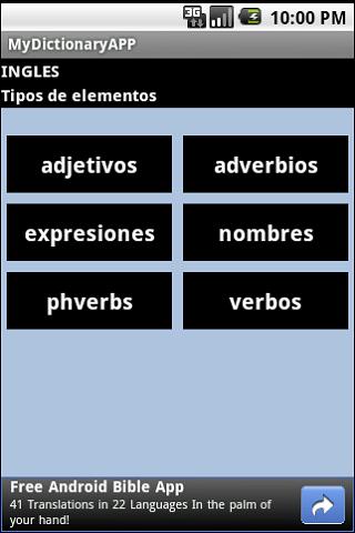 Are you studying any language or are ina foreign country??This is your APPMyDictionaryAPP is an application where the user can collect the vocabulary of the languages they are learning.Application provides functionality to create custom dictionaries In addition, the user can organize each dictionary defining the types of words expressions nouns, verbs, adjectives, animals, body parts, phrases you would use in a restaurant .....This application is really useful for people who are studying any language. Great for people who are in other countries and need a tool on hand to collect their new vocabulary.You no longer need to go with a notebook everywhere not to miss the language you are learning