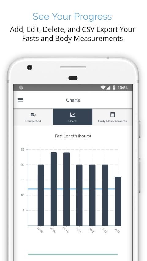 ★ Easily add, edit, delete, and .CSV export your completed fasts and body measurements like weight