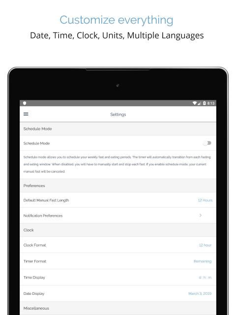 ★ Schedule out all your fast and eating windows for the week and let the app timer run automatically with notifications telling you when to stop eating and when to start fasting. For example you could easily schedule a 16 hour fast window for every day of the week.