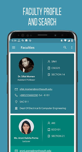Tampilkan semua profil fakultas dari kursus yang Anda ambil. Profil mencakup informasi penting seperti nama lengkap, gambar, awal, peringkat, departemen, email, nomor telepon dll.