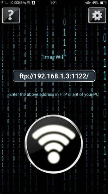 Buka aplikasi, aktifkan WiFi dan ketuk ikon WiFi untuk mendapatkan Alamat IP