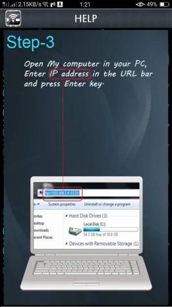 buka folder apa pun, salin dan tempel alamat IP dari aplikasi, dan tempelkan di kotak URL dan masukkan, masuk dengan nama pengguna dan kata sandi yang sudah Anda siapkan di aplikasi.