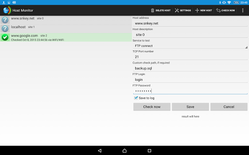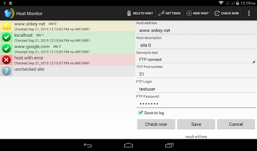 Dengan alat ini, Anda dapat memonitor (mis. Dengan ping) Status setiap host Anda di jaringan lokal atau di Internet. Anda hanya perlu menentukan alamat (URL atau IP), jenis (ping, get, ftp, dll) dan interval untuk memeriksa.