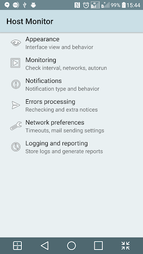 antarmuka monitor host mendukung pemberitahuan, widget, getar, suara, dan indikasi LED. Anda dapat menentukan persyaratan untuk memberi tahu - mis. Selalu, atau hanya jika kesalahan, atau jika status berubah, dll. Juga, Anda dapat mengatur pemberitahuan melalui email. Aplikasi dapat menyimpan, menampilkan dan mengekspor log dalam berbagai format, dan menyediakan fitur statistik.