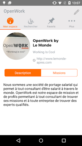 Aplikasi Openwork memungkinkan Anda menemukan konsultan independen sektor apa pun dalam 3 klik.Anda sekarang dapat staf di misi Anda dalam waktu kurang dari satu menit, dengan konsultan karyawan.Anda memiliki akses ke koordinat telepon dan email mereka.Anda mendapat manfaat dari fleksibilitas dan responsif total pada kebutuhan bisnis Anda.Anda menandai profil favorit Anda dan dapat memeriksanya secara offline.