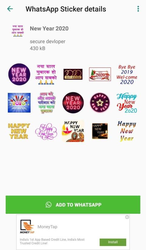 Untuk menambahkan stiker Anda perlu menginstal aplikasi, Pilih kategori tahun baru untuk mengetuk tombol Tambahkan ke WhatsApp. Sesudah ini,