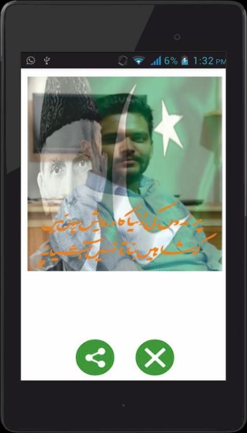 Jika Anda ingin menunjukkan cinta Anda untuk Pakistan maka aplikasi ini akan memungkinkan Anda untuk mencampur bendera Pakistan filter yang berbeda dengan foto Anda sendiri dan bait yang berbeda dari Iqbal Puisi dan puisi aneka termasuk dalam aplikasi. Anda dapat menunjukkan patriotisme dengan mengedit foto dan berbagi di media sosial seperti Facebook, Instagram dll
