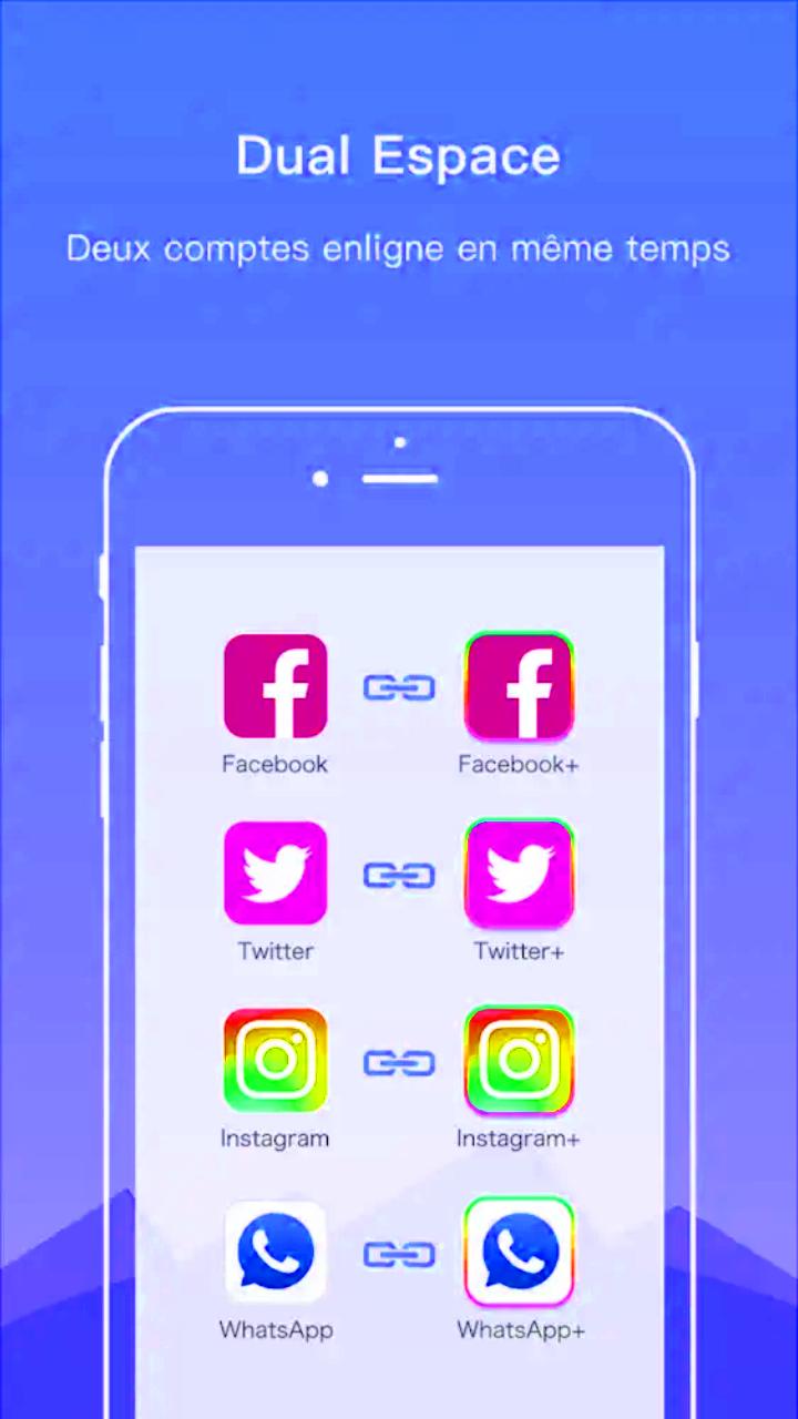 Do you need to switch from different WhatsApp or any social accounts on your phone ? Do you want to stay connected on all spaces ? Our easy "dual space apps" allows you to clone space of your Whatsapp or Facebook Messenger apps