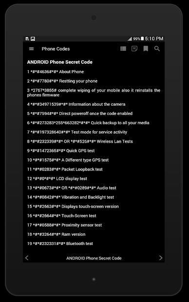 Are you looking for mobile phones secret codes, hidden menus, tricks and advanced functionalities? Did you know that smartphones are equipped with secret codes that can unlock (or lock) a number of different functions? The USSD protocol allows you to access hidden features you didn't know about right from your smartphone's dialer. But there is some trickiness you will need to know about. This app lists common mobile phones tricks, and secret codes for simple and cool advanced functionalities. Download this app today to Unlock the Hidden Features on Your Phone!