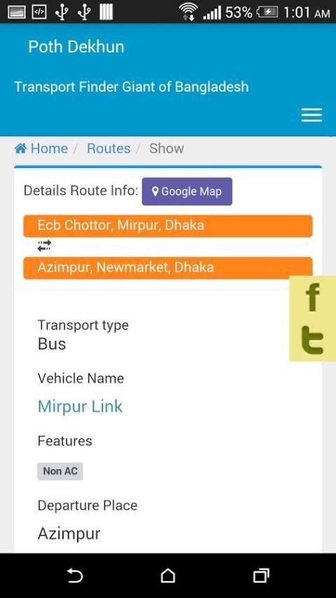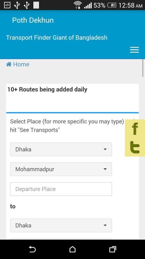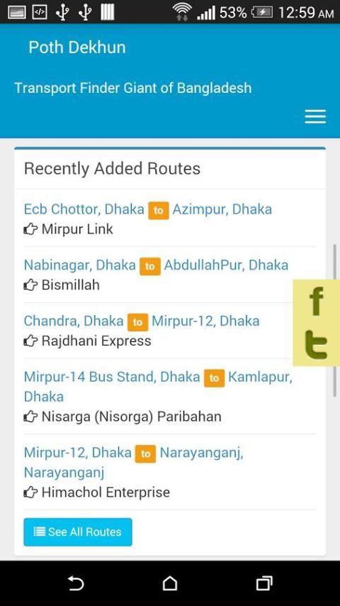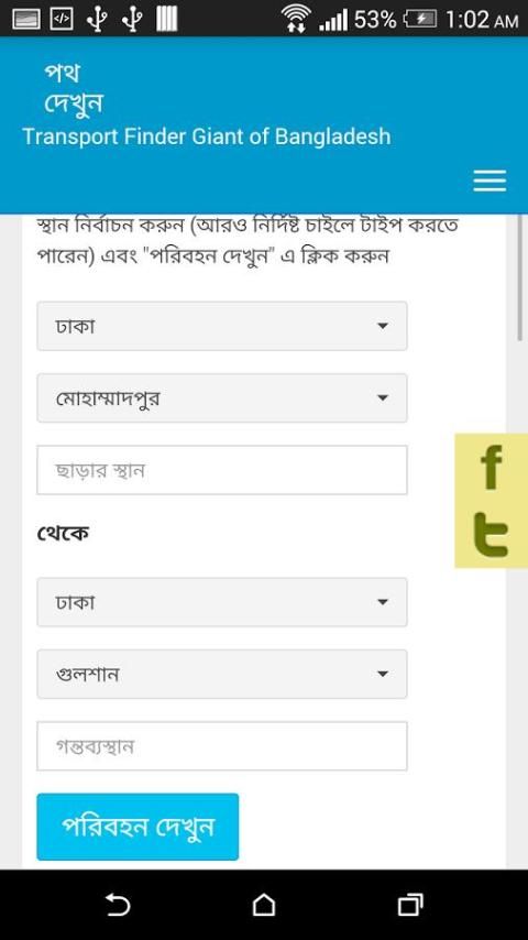 * Temukan semua angkutan dan rute dari kota Dhaka bahkan seluruh Bangladesh dengan satu kali klik