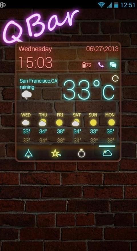 Neon ringan dan dinding bata merah, Q Bar toucher Pro Tema, dirancang khusus untuk toucher Pro, memberikan toucher Anda gaya kehidupan malam!