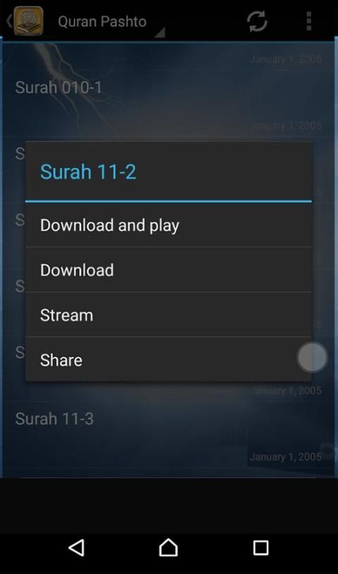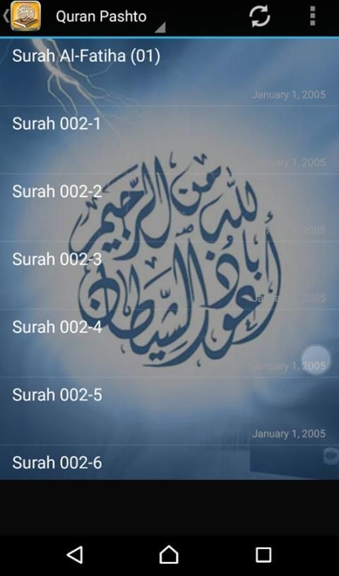 Semua file audio adalah set surah Al-Qur'an bersama dengan terjemahan Pashto Ayat-by-Ayat.