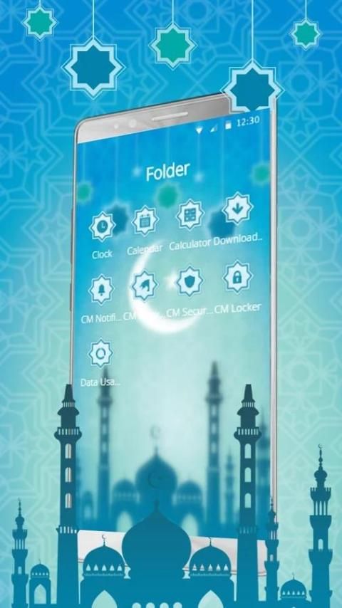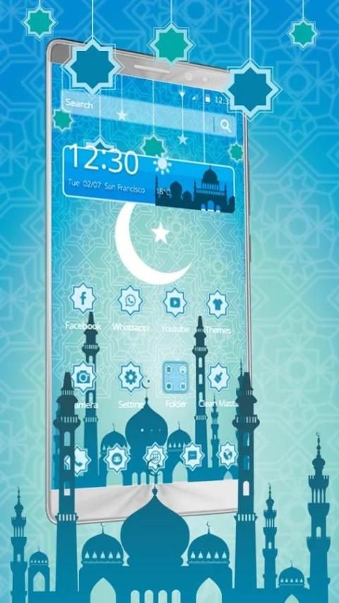 1. Tema layar terkunci Peluncur ramadan mencakupi wallpaper dinamis HD bulan Biru Festival india.