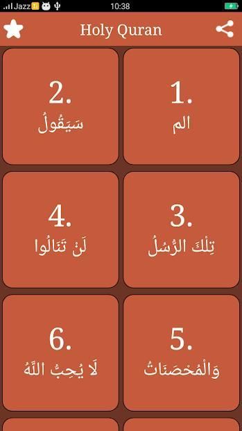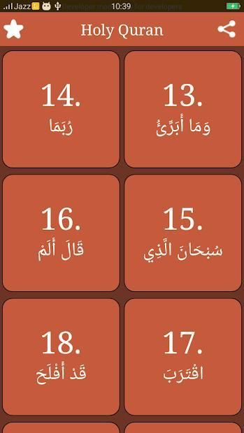 - All 114 Surahs of Quran are in order.