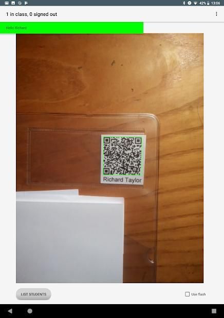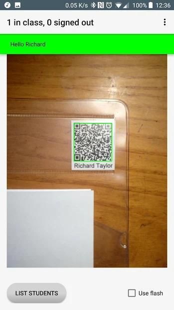 Setiap siswa diberi kode QR untuk dilampirkan ke folder atau buku mereka. Ketika mereka memasuki pelajaran, mereka memindainya menggunakan aplikasi guru, dan ini mencatat kehadiran mereka. Di akhir pelajaran, mereka memindai lagi. Telepon / tablet kemudian secara opsional menghubungi orang tua mereka melalui teks SMS, Whatsapp atau email, mengkonfirmasi pelajaran telah selesai.