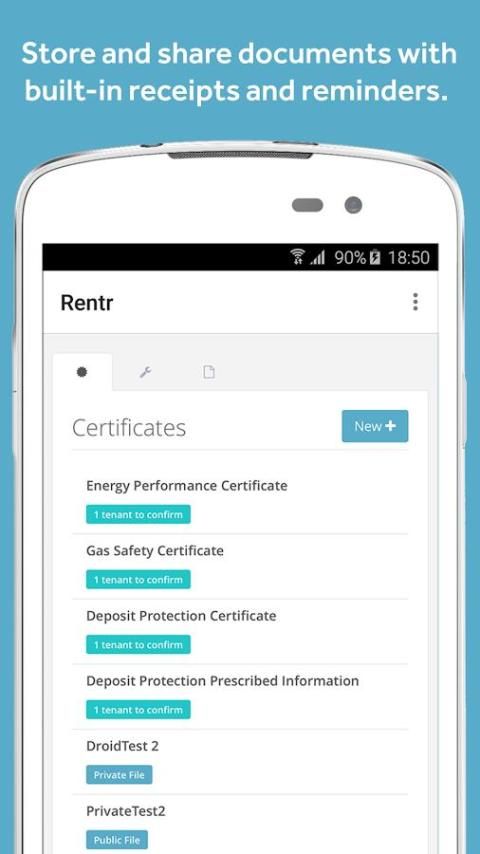 Rentr kemudian dapat secara otomatis lulus dokumen ke penyewa untuk konfirmasi penerimaan dan mengingatkan Anda ketika mereka jatuh tempo.