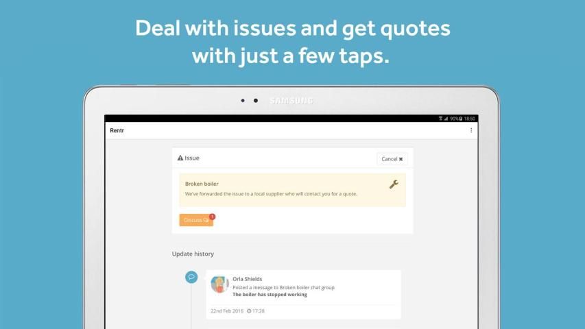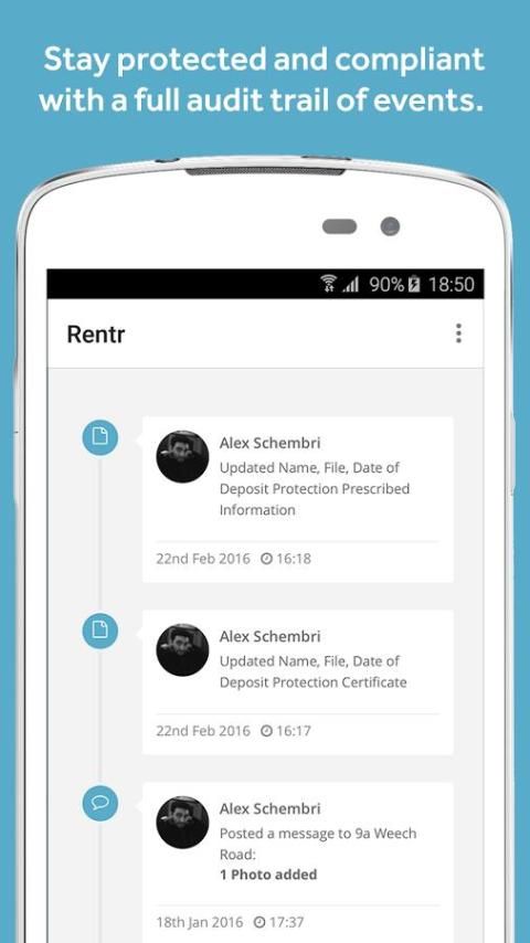 Rentr adalah cara baru untuk Tuan tanah dan Penyewa untuk menghubungkan dan mengelola menyewa on-the-go. Dengan beberapa PDAM dan gesekan, Anda dapat dengan cepat chatting untuk menyelesaikan masalah, menemukan pedagang terpercaya dan tetap up-to-date dengan peristiwa-peristiwa penting dan pengingat. Rentr juga melindungi Anda dengan masuk semua korespondensi & bursa di jejak audit rapi, menjaga Anda informasi perkembangan industri kunci yang dapat mempengaruhi Anda sementara juga menyimpan semua dokumen penting sewa Anda di satu tempat, dapat diakses dari mana saja. Menghemat waktu dan uang dan mendapatkan ketenangan pikiran dengan Rentr.