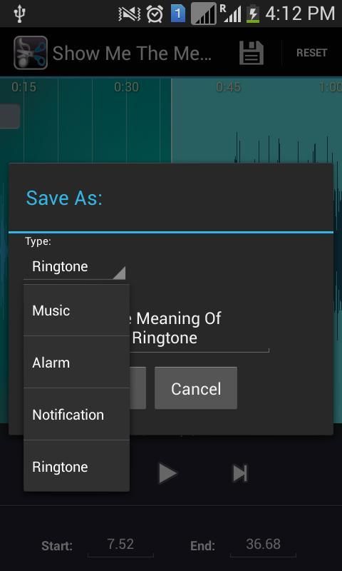- Option to Name the new cut clip while saving it as Ringtone/Music/Alarm/Notification Tone.