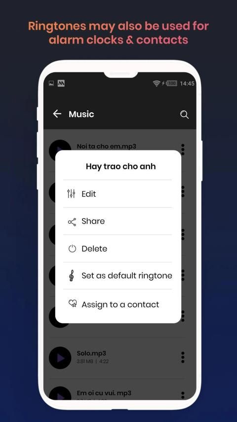 ♪ Atur klip baru sebagai nada dering default atau berikan nada dering ke kontak, menggunakan editor nada dering ini.