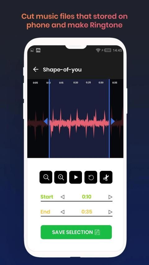 Dapatkan Ringtone Maker paling kuat dengan aplikasi pemotong mp3 dan lihat apa yang Anda lewatkan! Buat trek lagu terbaik, pemotong nada dering, remix, perpendek musik, mashup, editor tag dan banyak lagi dengan alat ini!