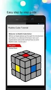 The Rubiks cube tutorial app consists of introduction and 7 stages. As a beginner you will be guided step by step to solve Rubiks cube.