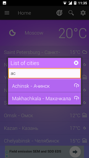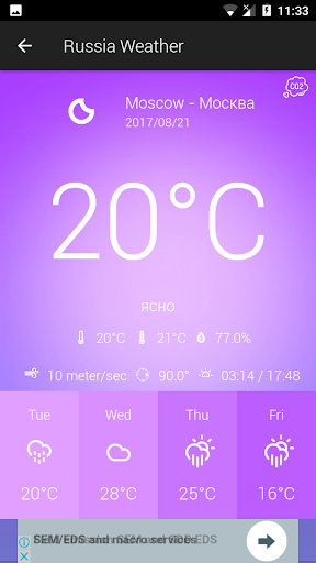 The application Russia weather for Android smartphones offers an experience of innovative weather.