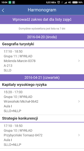 - wyświetlanie harmonogramu