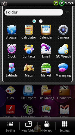 Samoled theme for GO Launcher EX.,.. REQUIREMENTS ,.. Latest version of GO LAUNCHER EX app installed,.. INSTRUCTIONS ,... APPLY THEME . In GO Launcher EX menu options select Theme In the Theme listing select the theme and Apply. CHANGE WALLPAPER . In GO Launcher EX menu options select Wallpaper Select Samoled Wallpapers Select Set Wallpaper. CHANGE FONT . In GO Launcher EX menu options select Preferences Select Visual settings Select Font Select Scan Font Select Font Theme Samoled GO Launcher EX. WIDGETS .clock Weather and calendar are available from Market. From the same authors of GO Launcher Ex.,.. COMMENTS ,..If you like it, please post your comment and rate this theme. If you need help just contact me.,.. MORE themes ,..See my other Apps to see more themes availableIcons made by Johnny quest http:forum.xdadevelopers.comshowthread.php?t1117986