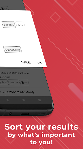 ✔ Urutkan hasil permintaan dengan nama torrent, ukuran, seeder, leechers, atau tanggal yang dipublikasikan